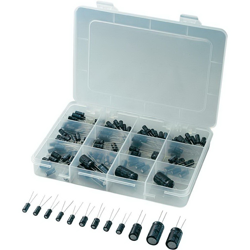 Конденсаторы электролитические в ассортименте 1 - 1000 µF 35 - 100 V, содержание 148 шт.